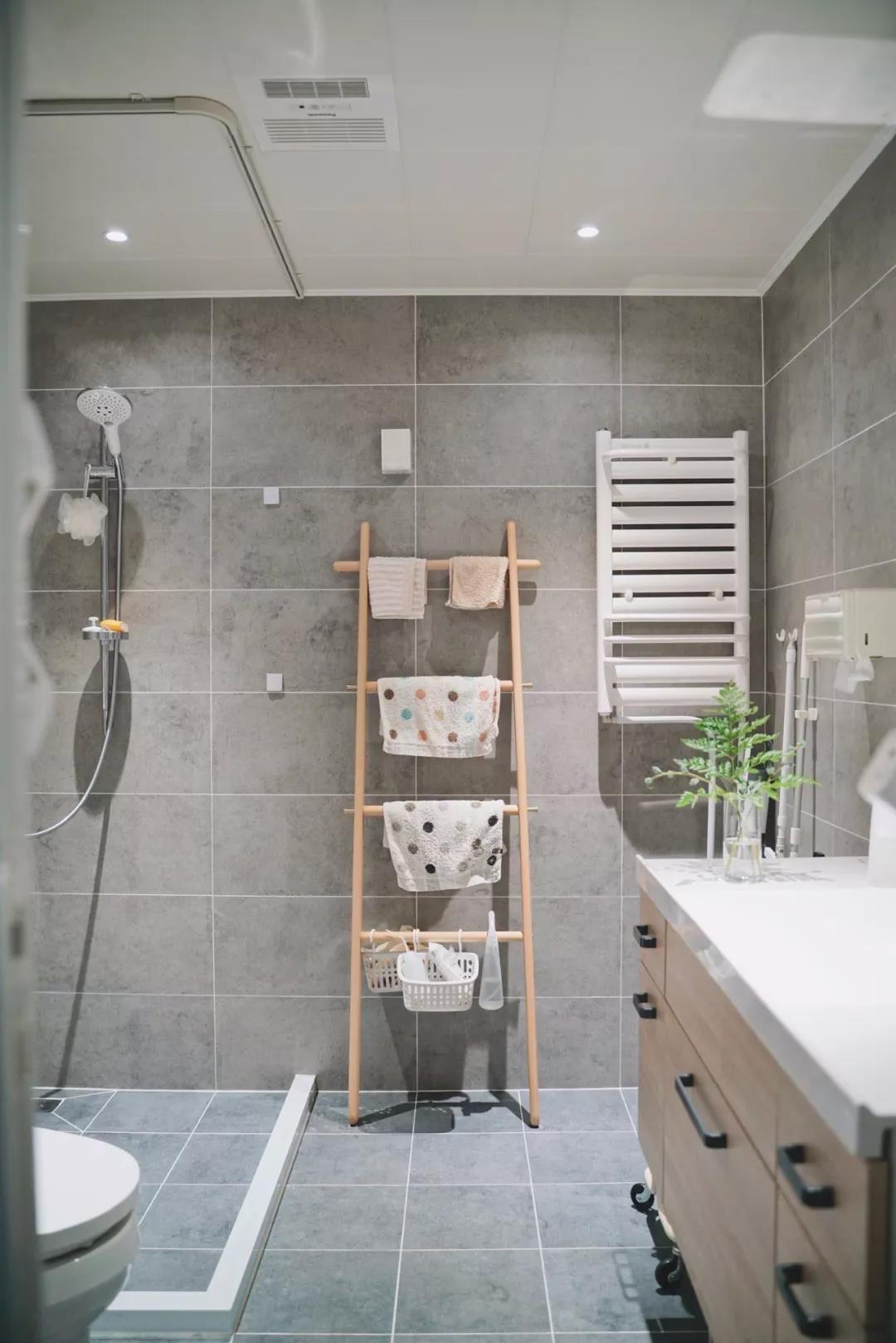 多數人對木工的印象就是“怕水”,其實以合適的處理方式,做衛生間的天花還是可以的!以硅酸鈣板/石膏板等相對防潮的材質作為吊頂基礎,然后刮上防水性能更強的外墻膩子,再刷上防水的乳膠漆,這樣的木工吊頂就可以作為衛生間的天花裝修方案了!整體視覺簡潔統一,美觀大氣有檔次感。